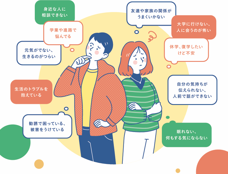 大学の生活では、これまでと異なり、自分で考え判断することが多く求められます。困ったとき、相談したいとき、どうぞお気軽に来室してください。