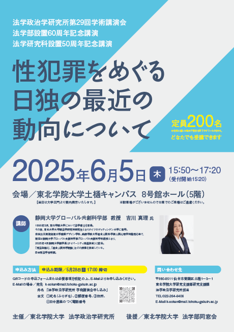 講演等の詳細な内容は、東北学院大学法学政治学研究所紀要(第34号)2026年1月刊行に掲載されております。