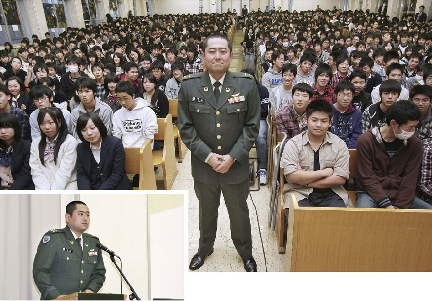 12月15日、榴ケ岡高校礼拝堂を訪れ、後輩たちにメーセージを送ったのは、スペインのフェリペ皇太子賞「共存共栄賞」(平和部門)を授与された同窓生の加藤憲司さん(陸上自衛隊・ヘリコプター隊長)。加藤さんは「東日本大震災及び福島原子力発電所への災害派遣活動について」と題して講演。東日本大震災の際、東京電力福島第1原発事故の発生直後に原子炉を冷却した様子や、住民の避難誘導などの様子を語った。「これから社会に出る中で大切なことは、『気概』と『強い気持ち』です。皆さんはこれから先、様々な困難があるかと思いますが、自分に何が出来るのかを考えて頑張って欲しい。皆さんが今後の世界、日本を支える人材になれるよう同窓生として応援しています」とメッセージを送った。