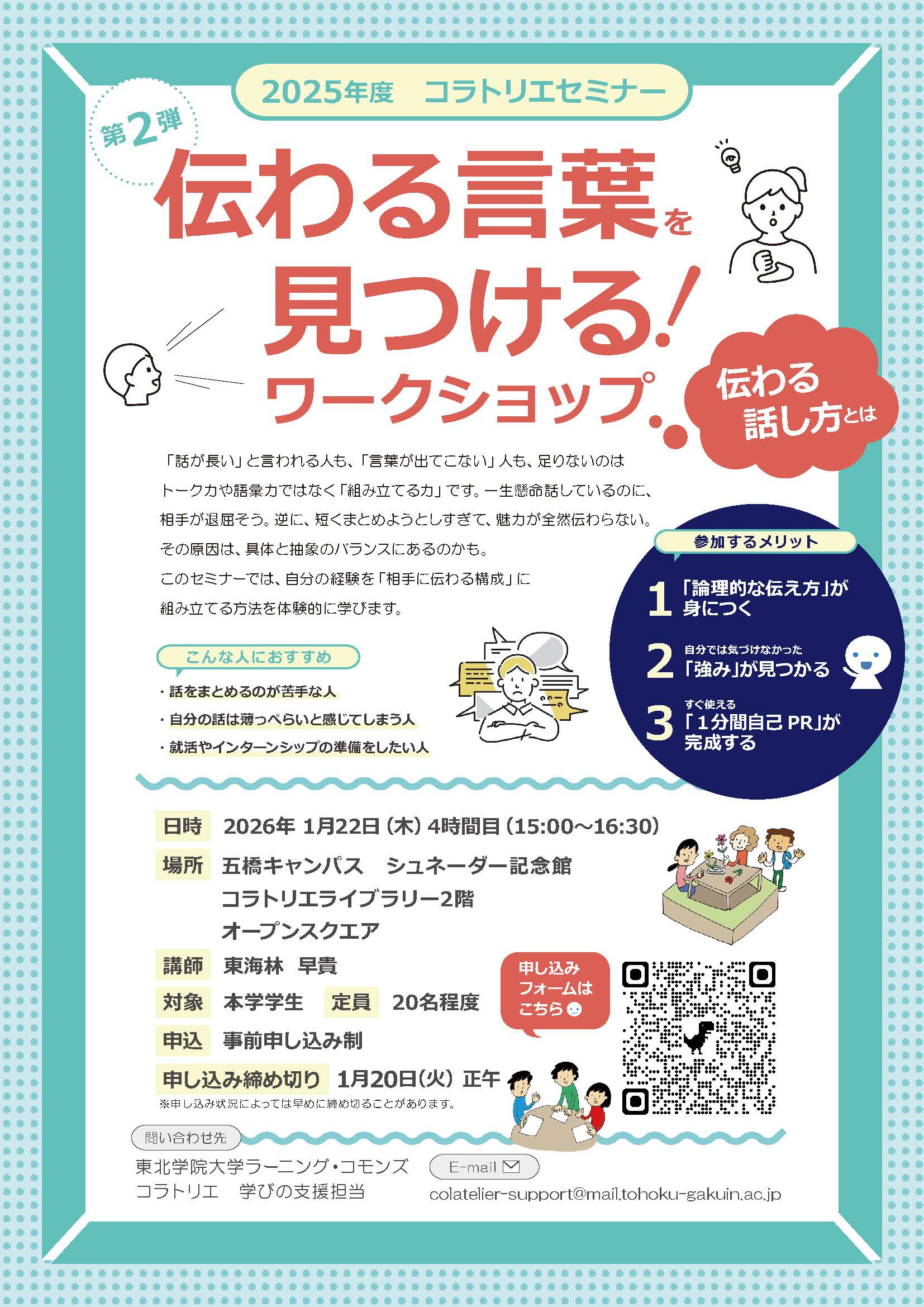 『伝わる言葉をみつける!ワークショップ -伝わる話し方とは-』を開催します。