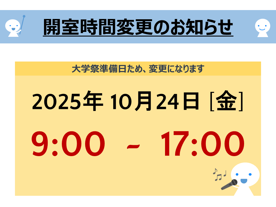 【土樋キャンパス】10/24開室時間変更のお知らせ