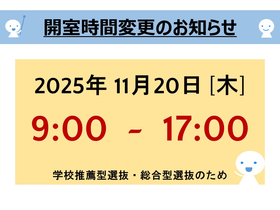 【土樋キャンパス】11/20開室時間変更のお知らせ