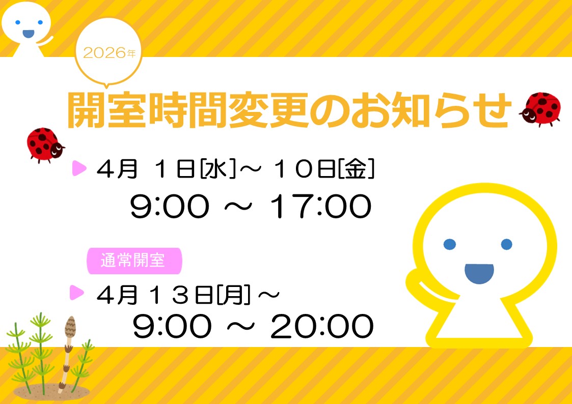 【土樋キャンパス】4月開室時間変更のお知らせ