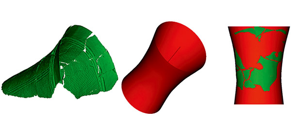 コンピュータグラフィックと数値計算を駆使して、立体物の一部から全体の形を推測する技術の研究をしています。例えば土器のかけらから、土器全体をイメージすることなどにも応用します。