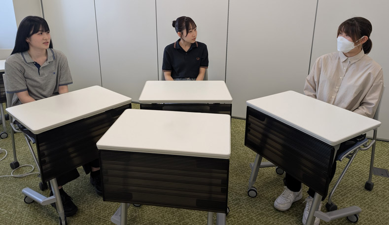 学生Voices#03 - 2期生インタビュー 政策デザイン学科の2年生に、大学生活で特に力を入れて取り組んできたことについて聞きいてみました。(参加学生:佐藤来海さん、佐藤梨乃さん、紺野莉歩さん) 佐藤来海さん:「せんだい共創ラボ」においてオーディエンス賞を獲得 せんだい共創ラボの概要を教えてください。 佐藤来海さん: 「せんだい共創ラボ」はNTT東日本が主催している大学生対象の新規事業開発と実現の支援をするプログラムで、私は一期生として参加しました。 具体的な活動としては、これまでの自分の経験を振り返り特に印象に残った出来事と自分が思う地域課題を掛け合わせて、何ができるかを提案し、様々な企業の方々の前でプレゼンテーションをしました。 11月の中旬にキックオフがあり月1でワークショップ、メンターの方とオンラインや対面での打ち合わせを月1~2回くらい、というのが大まかなスケジュールでした。メンターの方には、プロジェクトの進め方やプレゼンのやり方、人前での話し方や発表方法なども教えていただきました。個人が主体的に活動することが求められるため最初は不安でしたが、3月15日の成果発表会に向けて他の大学生メンバーやメンターの方など、たくさん壁打ちできる相手がいたのは心強かったです。 佐藤来海さんが取り組んだ内容について教えてください。 佐藤来海さん: これまでの経験を振り返った時、私の中で仙台へ引っ越したことが大きな変化であり、また今が1番充実しているため、この1年弱(当時は大学1年の為)で何が変化したか考えました。そこで家族との関わりが薄くなったという困り事があり、いつも支えてくれる家族になかなか会えない中、感謝の気持ちを伝えたいという思いがありました。その感謝の気持ちをどういった形で伝えられるかというのと、レトルトカレーというものを結びつけてレトルトカレーパッケージの開発をしました。 レトルトカレーパッケージに工夫を凝らして、普段ありがとうという言葉を恥ずかしくて言えないという人たちをターゲットに、勤労感謝の日や、父の日や母の日といった時に使えるような商品の提案をYUI NOS(ゆいのす)で企業の関係者の方25人くらいの前でプレゼンしました。具体的には送る相手によって違うパッケージなのですが、例えば娘から親に送る場合は「最近のマイブーム」や「実家に帰ったらしたいこと」、「伝えたい一言」などの項目がパッケージに書いてありそこに記入する形で、会話をするきっかけづくりができるものにしました。また、普通だと捨ててしまうパッケージの箱を保存しやすいような形状にして、貰った相手も思い出を残せるものにしました。あらかじめパッケージにメッセージを印刷して渡すだけの手軽なものも考えたのですが、私自身文字を書くのが好きで、手書きの文字だからこそ伝わる思いがあると考えたので、このようなパッケージを提案しました。 プレゼンの結果、私はオーディエンス賞をいただきました。これは聴衆の方々からの投票でいただける賞で、人の前で話すのが本当に久しぶりだったため緊張しましたが、素直に嬉しかったです。 プレゼンの感想やイベントに参加して学んだことを教えてください。 佐藤来海さん: 参加者それぞれが自分のプロジェクトを立ち上げ進めていくので、計画性と行動力が大事だと思いました。また自分が動かないと何も始まらないということを、身をもって感じました。いろんな企業の方に素敵なコメントを頂けて、新しいものを作るのは大変だけど楽しいなと思いました。 ただ、自分がやりたいことと社会から本当に求められていること、そこが一致しているのかを考えるのが難しかったです。また、手段が目的になってしまうことの問題についても勉強になりました。例えばイベントをやる際に、イベントの目的が見失われイベントをやること自体が目的となってしまうのは良くなくて、手段がメインになって本来の目的が見失ってしまいかねないので、あくまでイベントは手段であって一番の目的・自分がやりたいことを見失わないようにするのか大変でした。 私の場合は、本当は感謝の気持ちを伝えたいという一番の大きい目標があったにもかかわらず、レトルトカレーパッケージ作りが目標になりかけた時が何回かありました。メンターの方には、そのたびに軌道修正していただきました。 このプログラムに参加したことによって人脈がより広がりました。お誘いがあり関連するイベントへの参加やピッチコンテストを聞きに行ったりと、活動を通してさらに視野が広がっていくのを感じました。 参加学生から佐藤来海さんへの質問 紺野莉歩さん: 親への感謝の気持ちと、レトルトカレーを掛け合わせたのは、私は思いつかないと思ったので、それを思いついた理由とか、柔軟な発想はどこから来るのかと思いました。 佐藤来海さん: たまたまです。構想を重ねていくにつれて、自分の好きなものが結びついた結果だと思っ