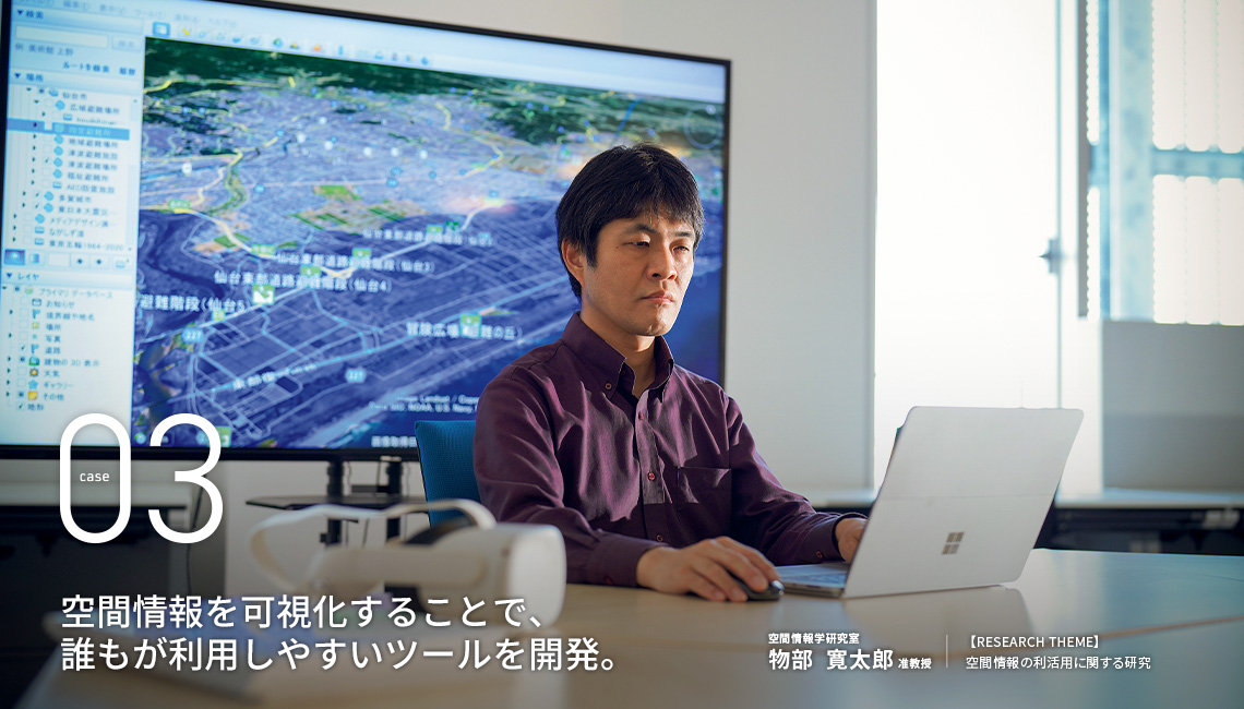 「その空間情報をさらに利活用することを目的に、デジタル地球儀を用いた空間的可視化による地域防災支援など、さまざまな研究に取り組んでいます」。