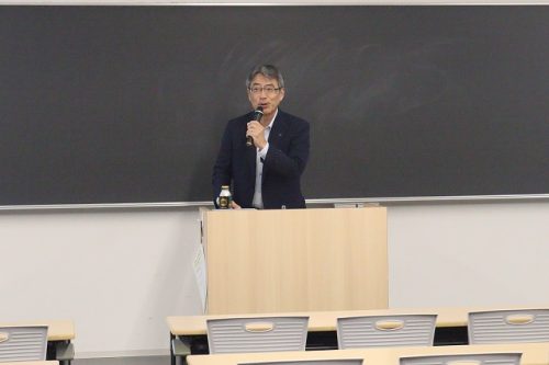 第5回は、西日本旅客鉄道株式会社 専務執行役員の藏原 潮氏を講師にお招きし、「コロナ禍を経てのJR西日本グループの進む道」をテーマにご講義いただきました。第4回に引き続き、本講義には38名が参加しました。