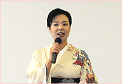 経営学部では、宮城県にある旅館の女将から、おもてなしやサービスの実践を学ぶ「おもてなしの経営学」という講義を開講しています。10月20日は、その第1回目として、秋保温泉にある緑水亭の若女将高橋知子氏の講義が行われました。