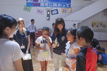 はじめは緊張して、あまり話をしなかった児童も、徐々に自己紹介や自分の好きなことを話せるようになってきました。また、午前、午後ともに最後に行った宝探しゲームでは、大学生から英語で質問されると児童も英語で答えるなど、スムーズに会話ができるようになりました。