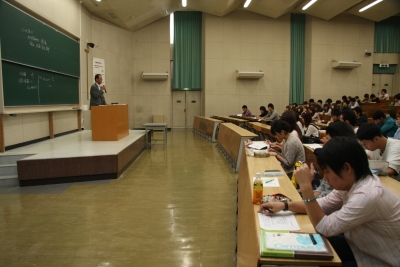 初回は約120名の受講者で、講師として七十七銀行地域振興部調査課課長佐藤育朗氏が担当されました。初回の講義内容はガイダンスの後、金融の基本というテーマで、佐藤講師の今までの業務経験や実例をとおして講義されました。また、この講義にはマスコミも数社訪れ、後日紹介される予定です。