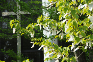 *「ハンカチノキ(別名: ダヴィディア)」は、「ハトの木」や「ユウレイの木」とも呼ばれ、ハトは天使のハト、ユウレイは聖書のことと考えられています。写真は多賀城キャンパス礼拝堂前のハンカチノキ
