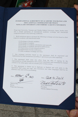 ベトナム、ホーチミン市にあるNong Lam University(ノンラム大学)のNguyen Hay(グェンハイ)学長が10月4日、東北学院大学土樋キャンパスを訪れ、本学との国際交流協定が締結されました。