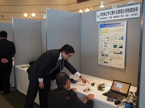 本学からは工学部電気情報工学科 岩本正敏 准教授/教養学部人間科学科 岡﨑勘造 准教授/工学部機械知能工学科 小野憲文 教授/工学部電子工学科 加藤和夫 准教授/工学部環境建設工学科 武田三弘 教授/教養学部情報科学科 松尾行雄 准教授がポスターを展示しました。