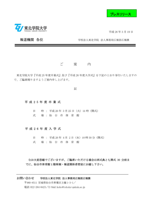 東北学院大学『平成25年度卒業式』及び『平成26年度入学式』のご案内 2014年03月19日 (クリックでPDF表示 185KB) (クリックでPDF表示 185KB) ブログ 新着情報バックナンバー 2025年 2024年 2023年 2022年 2021年 2020年 2019年 2018年 2017年 2016年 2015年 2014年 2013年 2012年 2011年