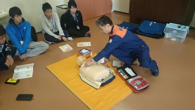 本学体育会学生を対象にした救命応急手当講習会が、仙台市消防局泉消防署救急係から3名の講師においでいただき、泉キャンパス体育館研修室にて開催されました。