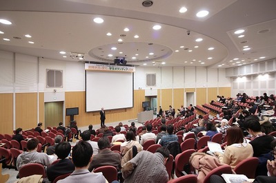 一日目、開会にあたって佐々木俊三副学長が東日本大震災直後の学生ボランティア活動などを振り返りながら「大学間連携災害ボランティア活動を継続していく中で、学生が被災地で活動しやすい枠組みを社会が作っていく必要性があることを主張していきたいと考えています。幸いに復興庁が協力的で大学生のボランティア活動を高く評価してくださり、社会を動かせる方々と一緒になって被災地や高齢化社会を手助けしていけたら、このボランティア活動はもっと意義のあるものになると思います」とあいさつしました。