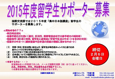 国際交流課では2015年度「集中日本語講座」留学生のサポーターを募集します。
