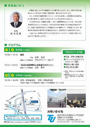 就職状況の説明及び専門家による講演、学部学科ごとの相談会を行いますのでぜひご出席頂きますようご案内申し上げます。