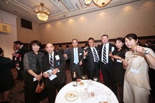 来賓の祝辞のあと、東北学院同窓会の峯岸良慥副会長の音頭により、今回レセプション記念に制作されたKAYAKSのネクタイを締めた現役部員26名も含め全員で乾杯を唱和、祝宴が始まりました。