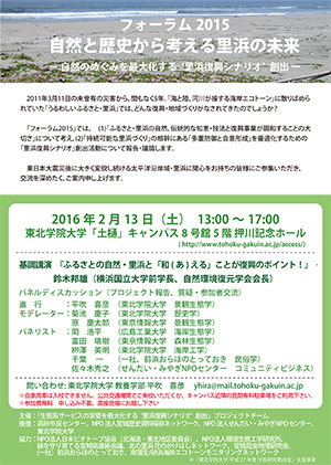 フォーラム2015「自然と歴史から考える里浜の未来 ―自然の恵みを最大化する'里浜復興シナリオ'創出―」開催のお知らせ(2/13)