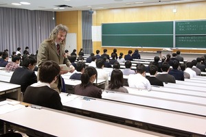 仙台の試験会場となった土樋キャンパスでは、前日の1月31日の受験生受け入れの設営準備、会場の教室などで準備が進められました。そして迎えた2月1日の試験初日には、法科大学院・総合研究棟前で応援団とチアリーディングチームが会場へ向かう入学志望者に向けてエールを送り、定刻の10時30分より約1,700名が試験に臨みました。