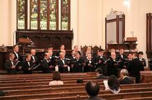 礼拝終了後は、東北学院大学グリークラブの学生とグリークラブOB会による合唱が行われ、白人の宗教歌とアフリカ独特の音楽的感性が融合して生まれた歌謡・黒人霊歌等5曲が披露され、礼拝堂内にすばらしい歌声が響き渡りました。