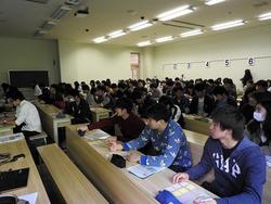 金菱教授は、この手法は主に死生学で用いられる「疑似喪失体験」の手法と語り、泉キャンパス2号館232教室での90分間、学生、一般参加の方も数名、そして取材に訪れた6社の記者陣を含めた約120名にとって、静かな余韻を残す特別講義でした。