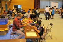 本学のブースは、教養学部情報科学科の坂本泰伸教授、村上弘志准教授を講師として「大気圧を使ってコップを持ち上げよう」、「分光シートを活用して、光の不思議を体験しよう」というテーマの実験ブース。