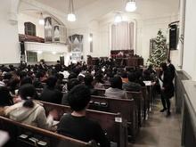 退場の際は一同キャンドルサービスを行いながら降壇しました。当日は礼拝堂内にクリスマスツリーを飾るなど装飾を施し、参加した学生たちを歓迎していました。