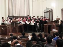 讃美歌を歌った後はクリスマス献金・聖歌隊による合唱が行われ、礼拝堂内は美しい歌声・パイプオルガンの音に包まれました。