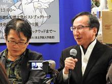 このイベントは仙台の出版社荒蝦夷(本学開催の連続公開講座『震災と文学』の講師陣をコーディネート)の土方正志氏を進行役に、文芸評論家の東雅夫氏、怪談作家の黒木あるじ氏による、2017年に出版された怪談・幻想文学の選書10冊をそれぞれ紹介するというもの。