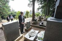 リッチ校長は7月17日から仙台に滞在し、大学礼拝に参加するとともに、水曜礼拝で説教を行い、北山キリスト教墓地にある三校祖の墓前や宮城学院などを訪れ、21日に帰国の途につきました。