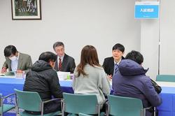 その後、8号館3階会議室での「個別相談」に移動して、学部等の各ブースでは、教職員が高校生や保護者からの質問に丁寧に答え、入試相談や奨学金相談から学生会館や在学生懇談などの学生生活に至るまで、幅広いさまざまな相談にのっていました。また、ホーイ記念館ではラーニング・コモンズ(学習支援施設)のツアー説明会も実施され、多くの高校生たちが最新デジタル設備の館内を見学し、夢を膨らませていました。