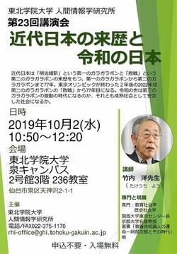 東北学院大学人間情報学研究所第23回講演会 近代日本の来歴と令和の日本(10/2開催)