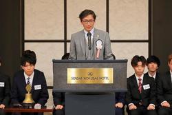 また、東北学院大学つばさレオクラブ顧問である鈴木教授は「レオ(leo)の意味であるリーダーシップ(leadership)、エクスペリエンス(experience)、オポチュニティ(opportunity)を活かして、地域社会への人道奉仕と国際的な相互理解の促進するために活動していく所存です」とあいさつしました。