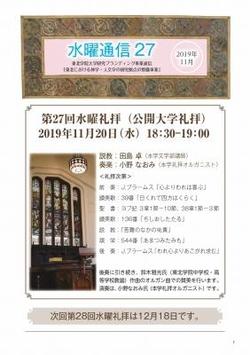 私立大学研究ブランディング事業「東北における神学・人文学の研究拠点の整備事業」の研究成果や収集資料等を掲載した機関誌「水曜通信 第27号」を発行いたしました。ぜひご覧ください。