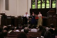 第2回公演の出演者は、リコーダー奏者であり講師の向江昭雅氏を筆頭に、同じくリコーダー奏者の辺保陽一氏、高橋明日香氏、浅井愛氏、チェンバロ奏者の平井み帆氏、ヴィオラ・ダ・ガンバ奏者の坪田一子氏、オルガン奏者の今井奈緒子教授の7名です。