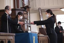 2月18日、ラーハウザー記念東北学院礼拝堂で2020年度オリエンテーション・リーダー功労者感謝状贈呈式、2021年度新入生オリエンテーション・リーダー委嘱状交付式、2020年度課外活動功労者表彰状授与式が行われました。