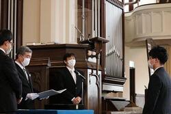 続く大西晴樹学長の告辞では、新型コロナウイルス感染症や大西学長の専門である17世紀イングランドにおいて流行した感染症のペストについて記した記録文学について取り上げ「個人の尊厳の根拠である個人の自由の保護と感染症防止のためのデジタル技術の関係を考える大切さ」を説き、「東北学院のLIFE LIGHT LOVEの教えのもとに、感染症パンデミックによって大きく変化しようとしている時代を確実に捉え、厳しい時代だからこそ希望をもって生きていってもらいたい」と祝福の言葉を贈り、卒業生31名は、それぞれの道へ歩み始めました。