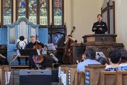休憩を挟み後半には、バッハのカンタータ第35番第1曲と第2曲、第29番の全曲が、それぞれの解説に続いて披露されました。およそ40名の奏者による豪華な演奏を礼拝堂の雰囲気が一層引き立たせ、来場者の大きな拍手とともに公演が終了しました。