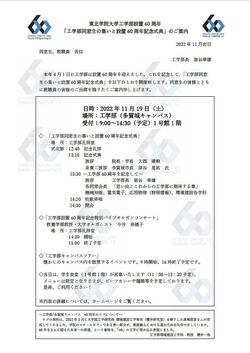 東北学院大学工学部設置60周年 「工学部同窓生の集いと設置60周年記念式典」開催のご案内(11/19)