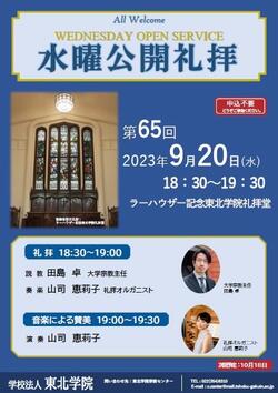 9月20日(水)、宗教センター主催「第65回水曜公開礼拝」を土樋キャンパスのラーハウザー記念東北学院礼拝堂で開催します。