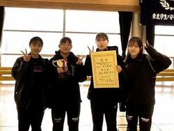 本学体育会バドミントン部が12月4日から12月8日まで行われた東北学生バドミントン選手権新人戦に出場し、男女ともに団体戦で優勝しました。男子はシングルスで後藤優季さん(経営学科1年)、ダブルスでも寺島彬人さん(人間科学科2年)と後藤達哉さん(経営学科2年)ペアが優勝し、2年連続で3種目を制覇しました。