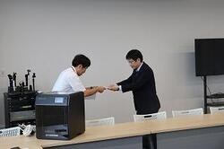 7月9日に五橋キャンパスにて、株式会社七十七銀行様と株式会社マトロ様より「77SDGs私募債(寄付型)」における寄贈として、3Dプリンターの贈呈式が行われました。