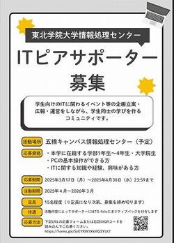 ※2025年度東北学院大学情報処理センター「ITピアサポーター」の募集は定員に達したため応募を終了いたしました。