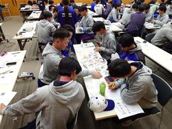 4月6日、本学硬式野球部の1、2年生の部員を対象に「ごはん足りてる?~必要なエネルギー量を知ろう~」をテーマとした栄養指導セミナーを実施しました。この取り組みは、2022年から実施している宮城学院女子大学との連携事業によるもので、当日は同大学でスポーツチームの栄養サポートを通じて地域貢献を目指す団体「Spⓡt A You(スポット アー ユー:通称SAY)」の学生にご協力いただきました。