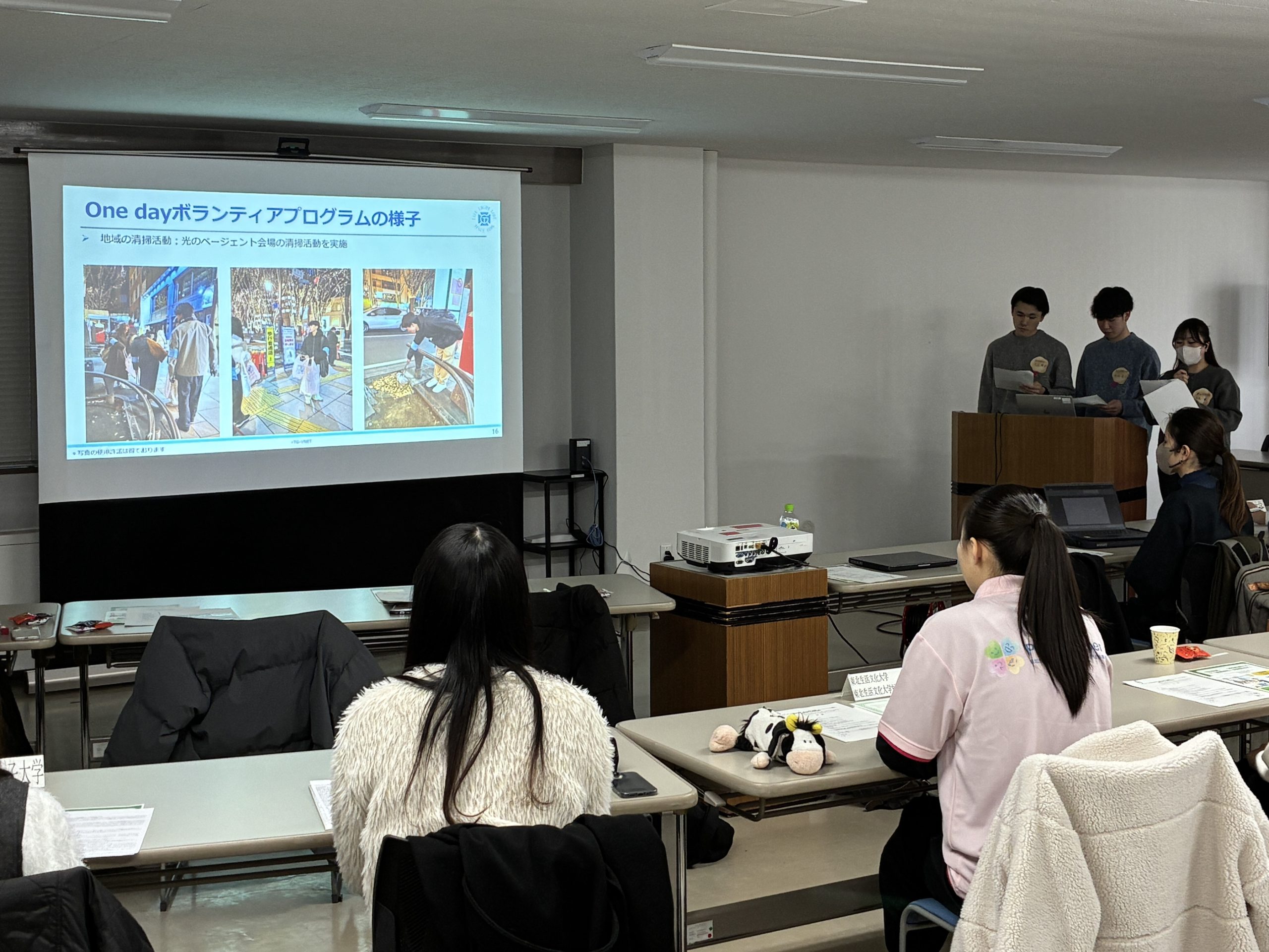 仙台市社会福祉協議会主催「ボランティア活動の連携・協力に関する協約 締結大学との合同交流会」にて総合ボランティアステーションについての報告を行いました 2026.02.17 お知らせ 2025年2月12日(木)に、仙台市社会福祉協議会が主催する「「ボランティア活動の連携・協力に関する協約(パートナーシップ協約)」締結大学との合同交流会」にて総合ボランティアステーションの学生運営チームが発表を行いました。 合同交流会では、仙台市社会福祉協議会とパートナーシップ協約を締結している本学も含む8大学の学生によるボランティア活動紹介や、活動報告などの発表が行われたほか、学生同士での意見交換会などが行われました。 一覧へ戻る