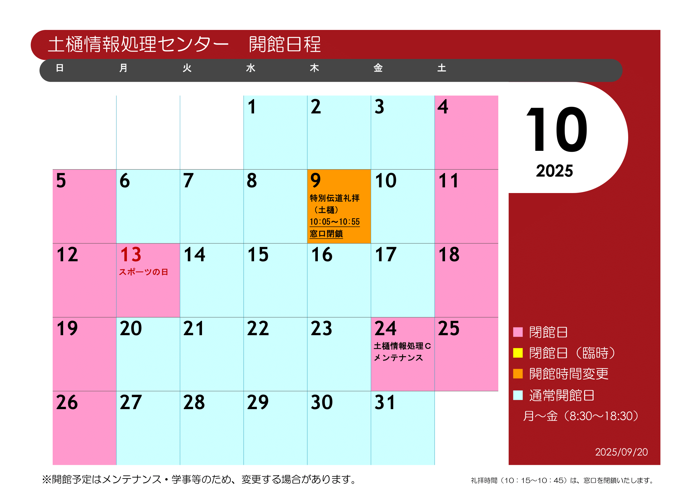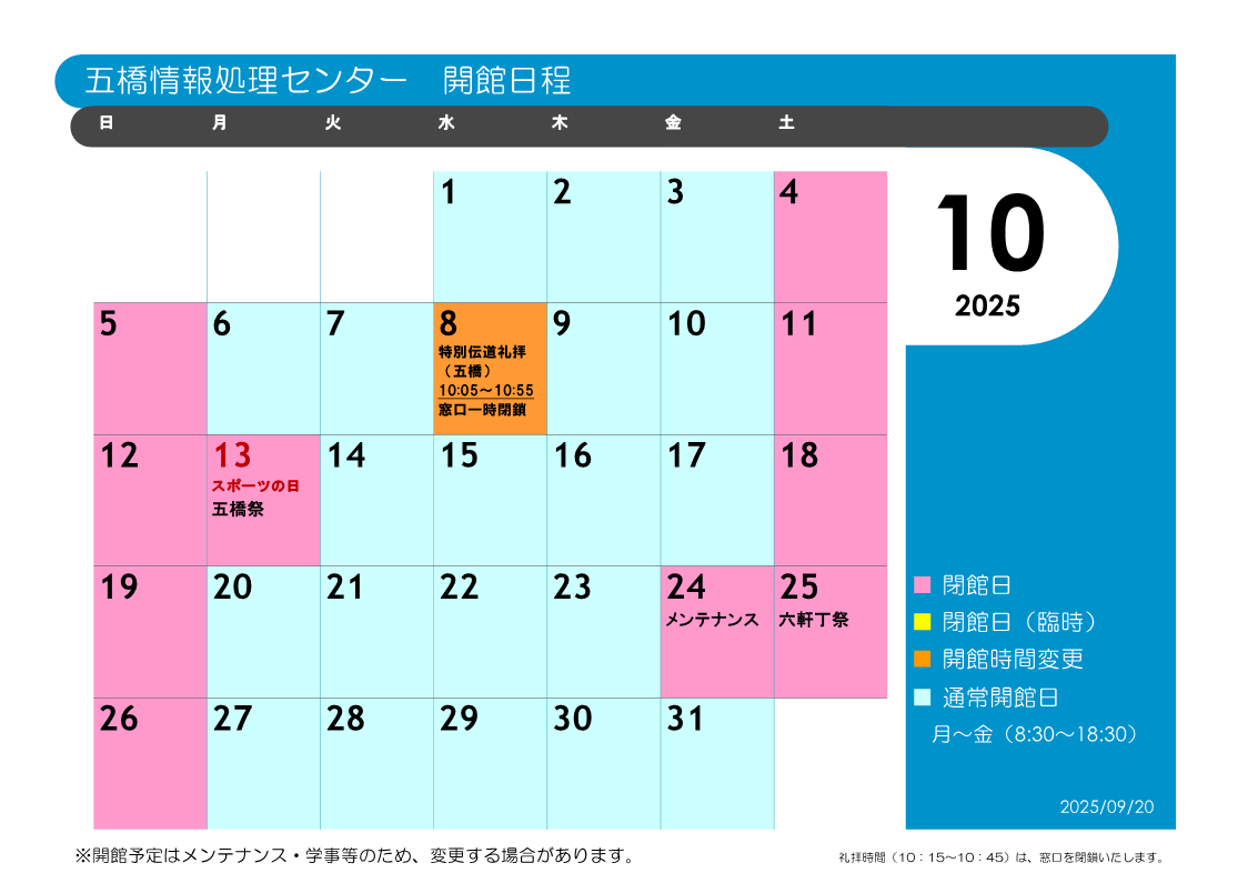 - 当日のみの授業利用・教室借用・メンテナンスは本資料には掲載されておりませんので、そちらについては、開館カレンダーや施設利用状況表示(当日教室運用スケジュール)をご確認ください。