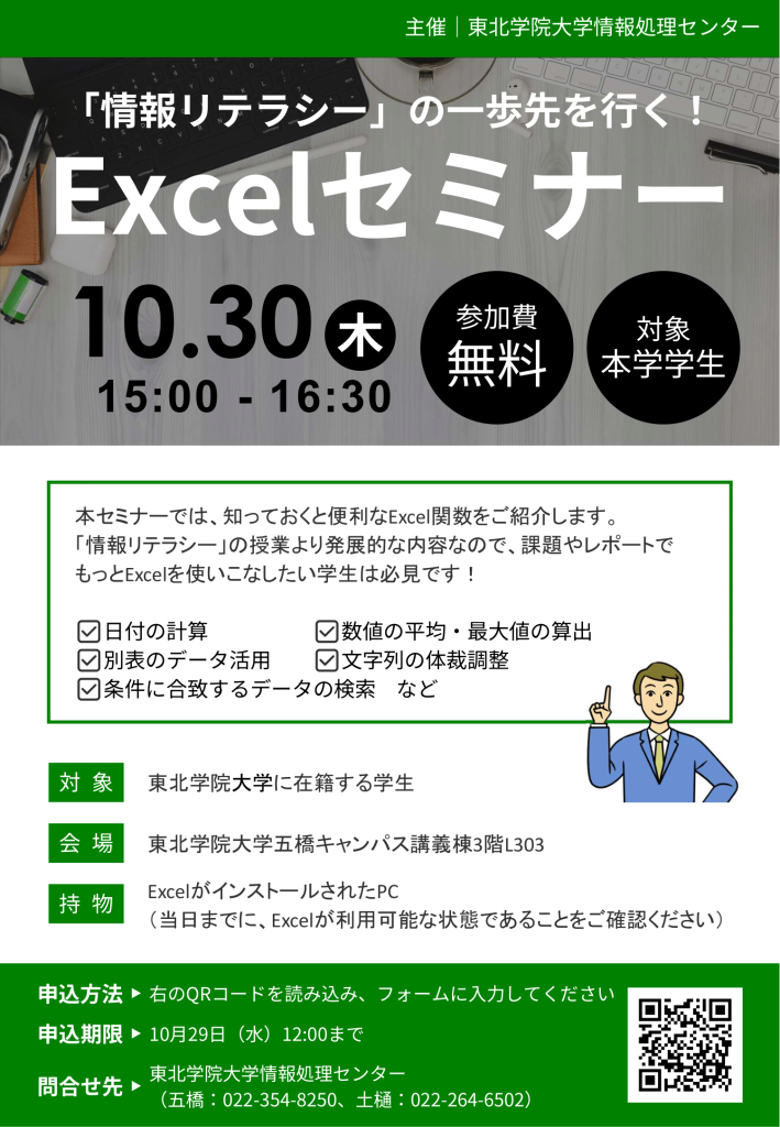 この度、東北学院大学情報処理センターでは、「Excelセミナー」を開催します。