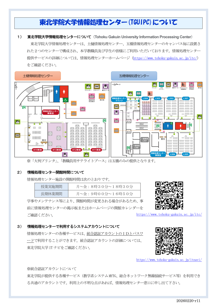 東北学院大学情報処理センターは東北学院大学の教育研究施設として、情報処理センターシステムによるIT学修環境を提供し、教育及び研究に寄与することを目的としています。